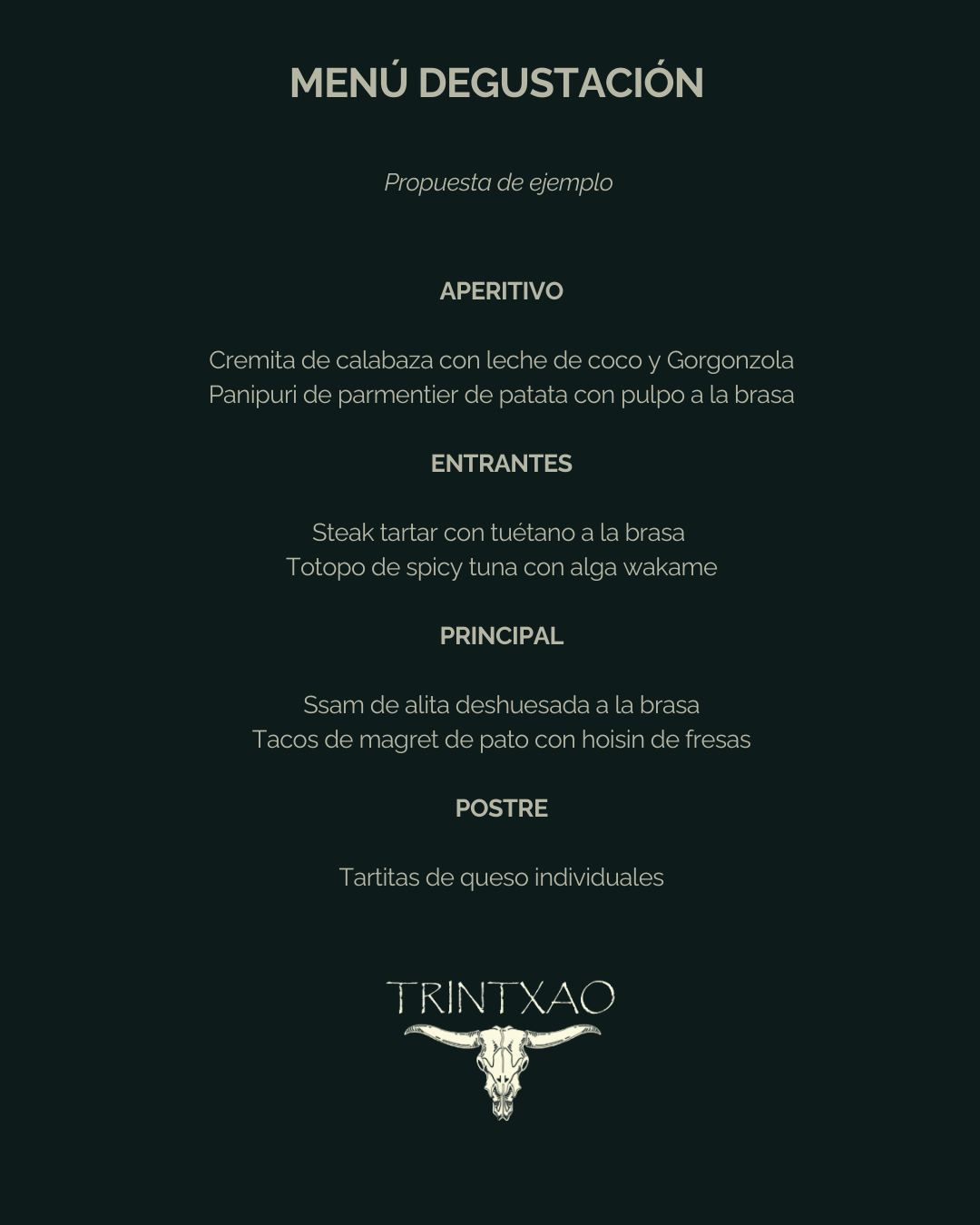 El menú degustación Trintxao es un recorrido a la brasa por nuestra forma de entender la cocina: producto de primera, fuego real y platos que combinan sabor, sencillez y contraste.